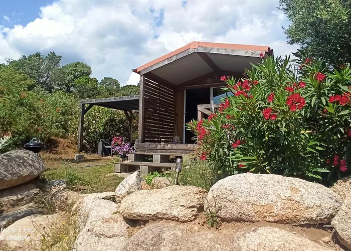 Petit Chalet má výhled na hory a se nachází 10-minutovou jízdou k Plage de Furnellu. Místnost na posezení, vícekanálová televize a ovládání klimatizace jsou součástí pokojů této nemovitosti.